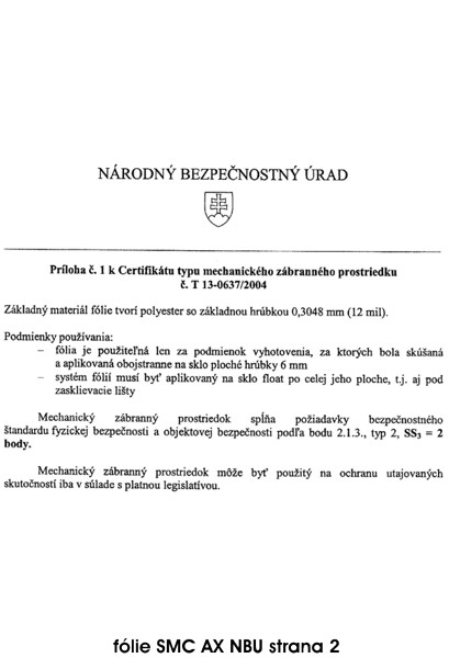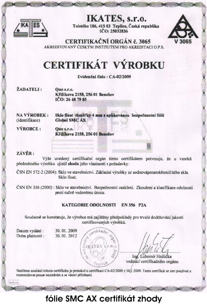 CERTIFIKÁTY PRE BEZPEČNOSTNÁ FÓLIA