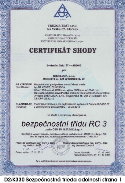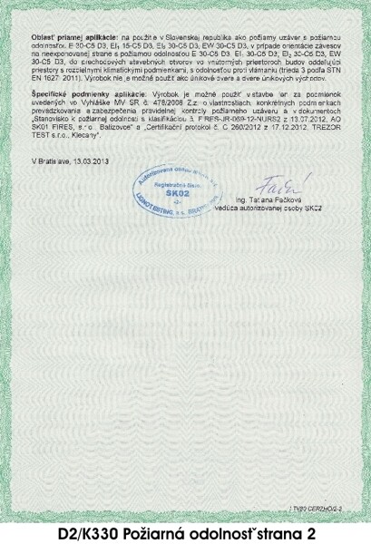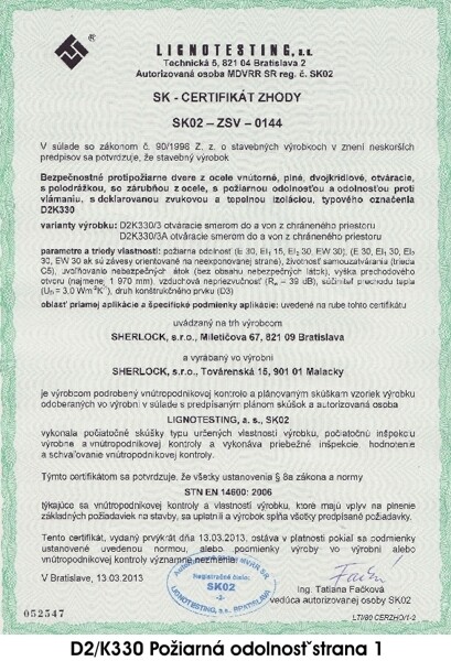 CERTIFIKÁTY PRE BEZPEČNOSTNÉ DVERE D2K330