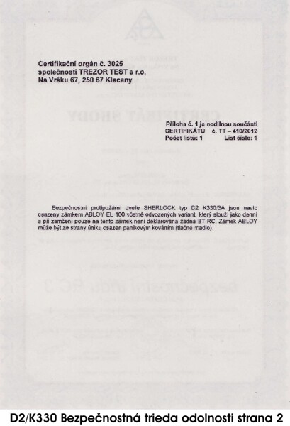 Safepoint.sk > Iné > Certifikáty > CERTIFIKÁTY PRE BEZPEČNOSTNÉ DVERE D2K330