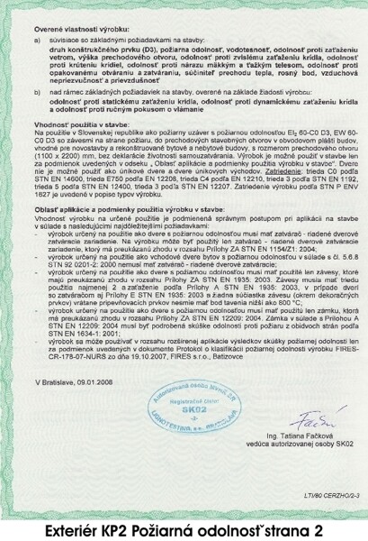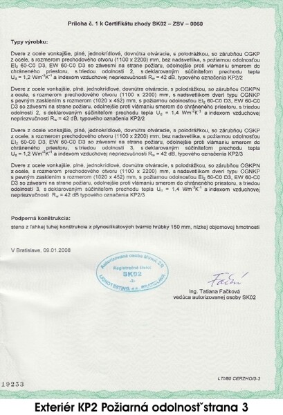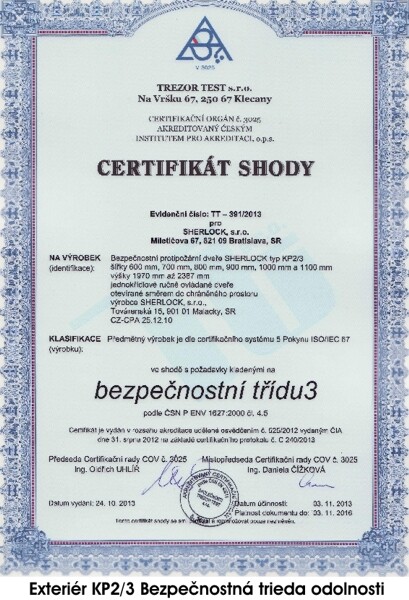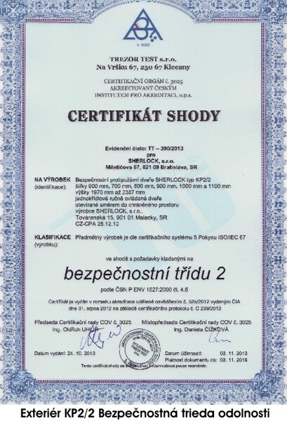 CERTIFIKÁTY PRE BEZPEČNOSTNÉ DVERE EXTERIÉR KP2