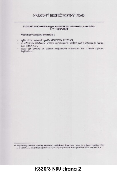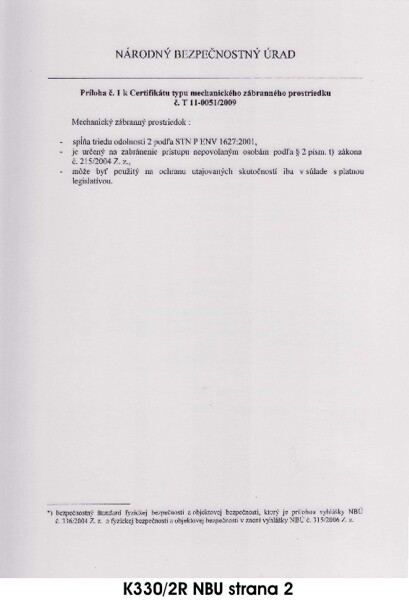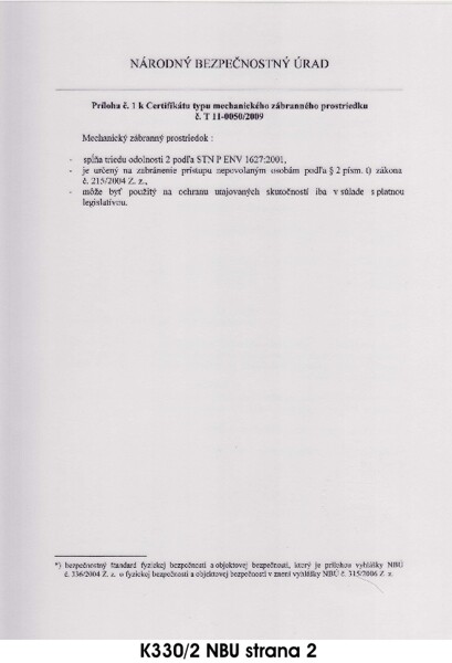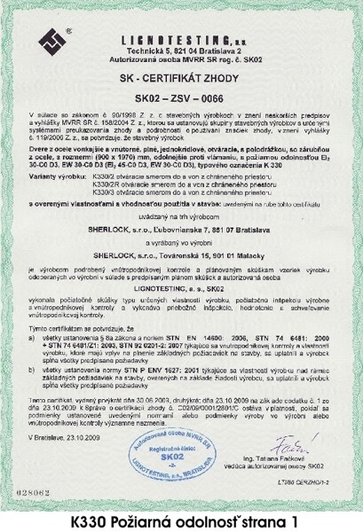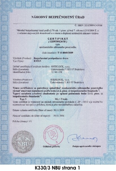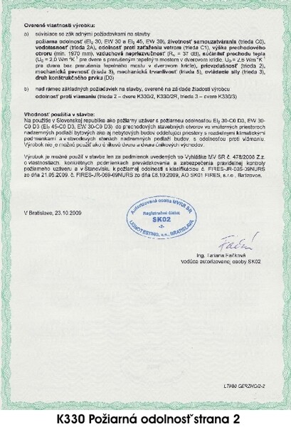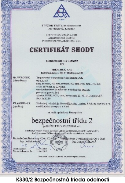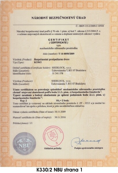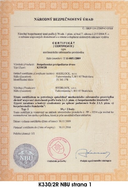 CERTIFIKÁTY PRE BEZPEČNOSTNÉ DVERE PRAKTIK PLUS K330