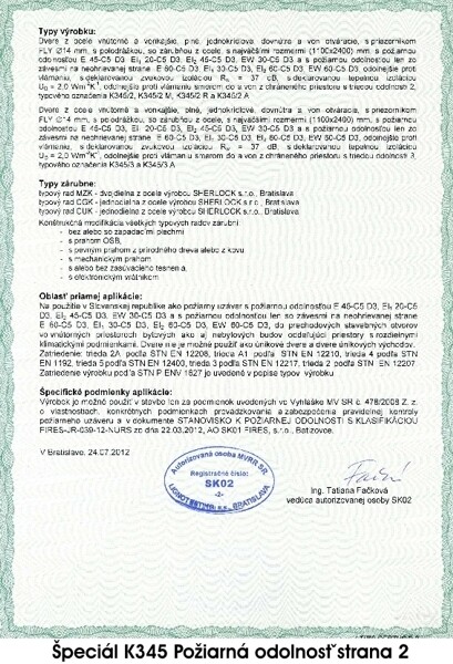 CERTIFIKÁTY PRE BEZPEČNOSTNÉ DVERE ŠPECIÁL K345