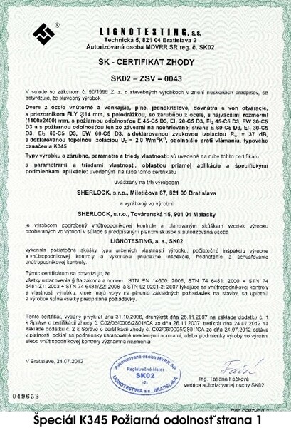 Safepoint.sk > Iné > Certifikáty > CERTIFIKÁTY PRE BEZPEČNOSTNÉ DVERE ŠPECIÁL K345