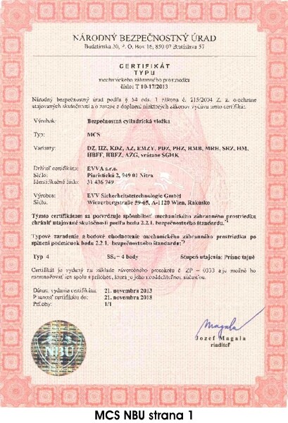 CERTIFIKÁTY PRE EVVA-MCS
