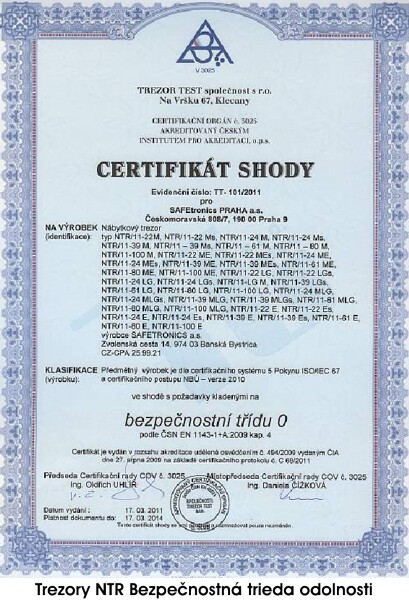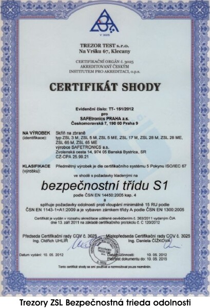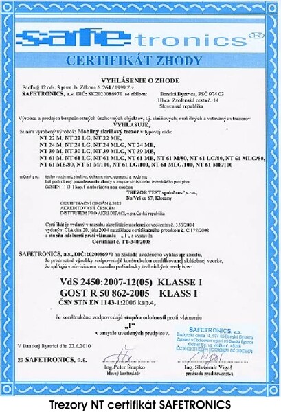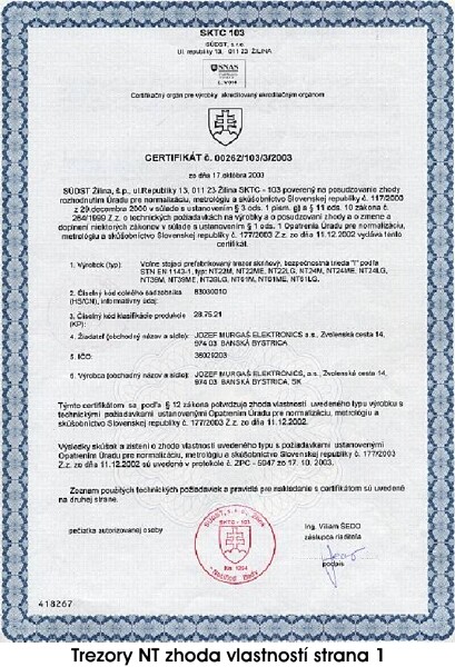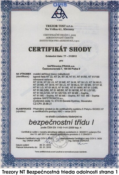 CERTIFIKÁTY PRE SAFETRONICS NÁBYTKOVÉ
