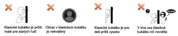 Najdôležitejším zabezpečením domácnosti z hľadiska bezpečnosti je hlavný vchod. Je hlavným vstupným bodom do domu. Spôsob identifikovať osobu, ktorá stojí za dverami, sa roky nemení. Klasický optický priezorník existuje viac ako 40 rokov a je jednou z možností, ako vidieť, kto je za dverami. Kvalita viditeľnosti však nie je veľmi dobrá a pri slabom osvetlení je viditeľnosť veľmi zlá. Používateľ musí priložiť oko k priezorníku, ktorý sa tým zatemní a tak dáva príchodziemu signál, že používateľ je doma.Priezorník PeepHole Viewer je digitálnym ekvivalentom klasického optického priezorníka a prináša mnoho výhod. Využíva LCD panel, na ktorom sa zobrazí, kto stojí pred Vašimi vchodovými dverami. Narozdiel od klasického priezorníka, cez ktorý často nie je dobre vidieť, Vám digitálny priezorník PeepHole Viewer ponúkne veľký a jasný obraz. Môžete sa vyhnúť otravným agentom, podomovým obchodníkom či zvedavým susedom bez toho, aby vôbec vedeli, že ste doma.