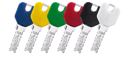 Voliteľne sú kľúče 4KS k dispozícii v čiernej, červenej, modrej, bielej, žltej a zelenej farbe. Farebné označenie uľahčuje priradenie kľúča.