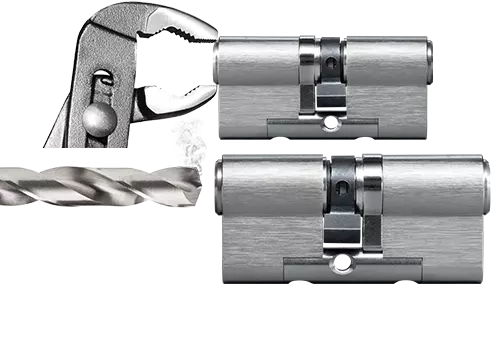 Posuvné závory z tvrdokovu a ochrana telesa pred odvŕtaním účinne chránia cylindrickú vložku 4KS pred pokusmi o odvŕtanie.